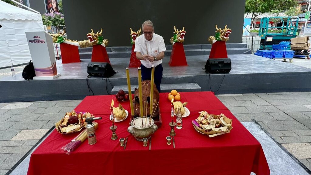 In a spirited show of support, International Dragon Boat Federation (IDBF) President Claudio Schermi took part in the traditional blessing ceremony today, wishing all race officials, team managers, and athletes the best of luck in the thrilling competition ahead.